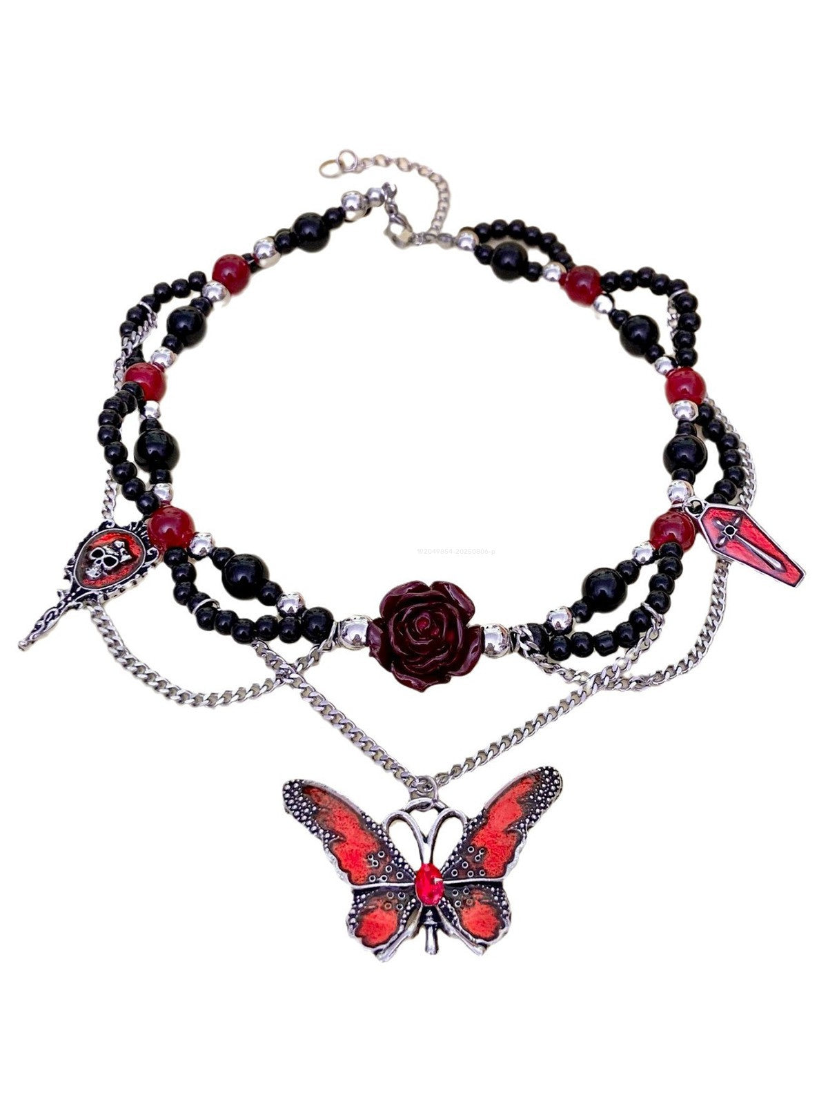 Gothic Beaded Rose Butterfly Skull Cross Chain Necklace for Halloween
