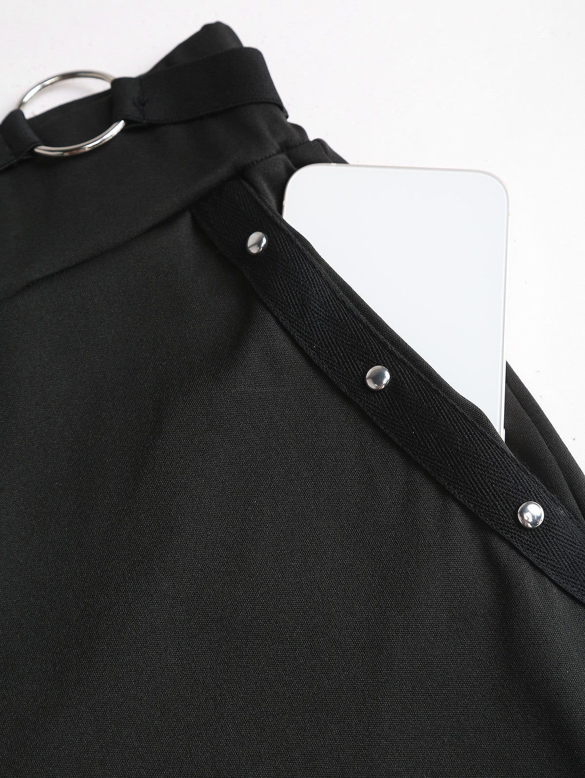 Gothic Solid Color Rivet See Thru O Ring Skinny Leggings