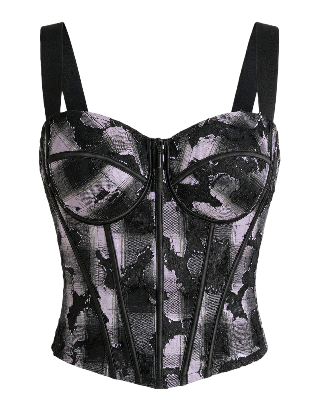 Black & Lavender Plaid Lace Patchwork Cami Corset Top - Retro Y2K Slim-Fit Bustier