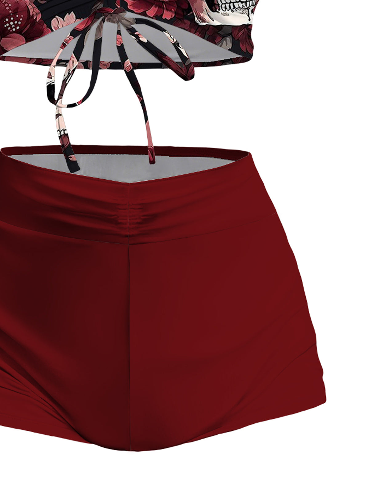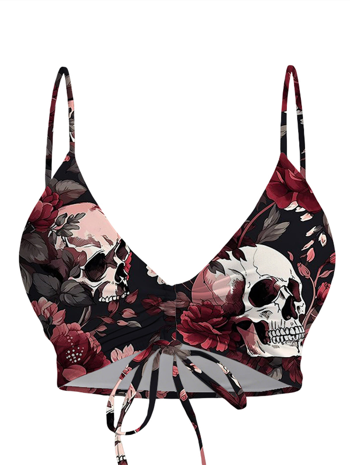 Goth Skull Red Rose Pattern Cami Top & Shorts Tankini Two-Piece