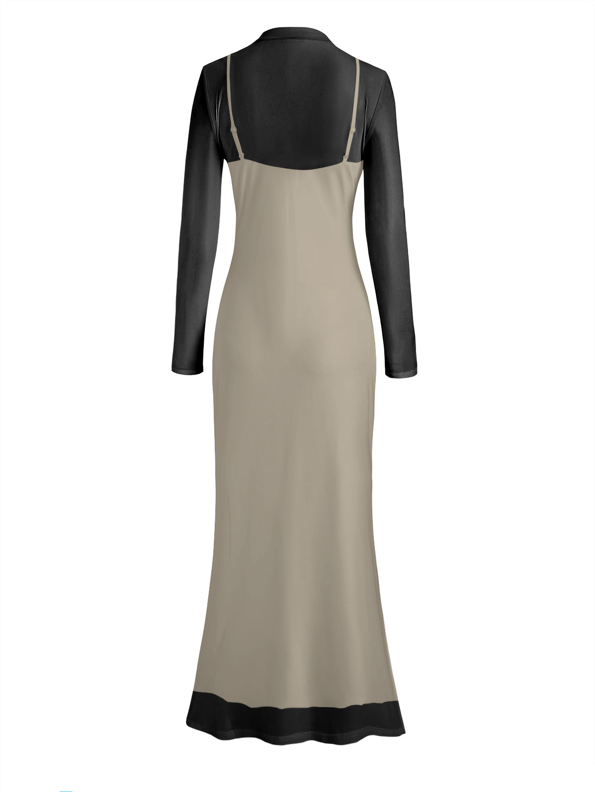 Gothic Sexy Mesh & Ghost Bride Skulls Slim Split Maxi Dress Two-Piece Set
